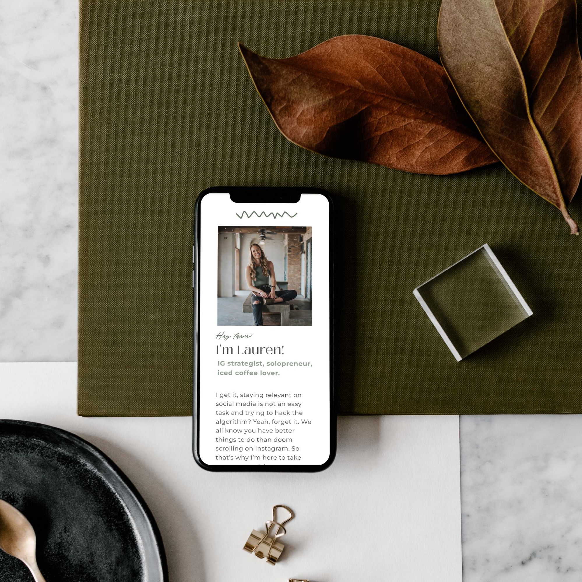 A boho, clean website for a business in Florida that creates strong Instagram strategies to help their clients to thrive on social media